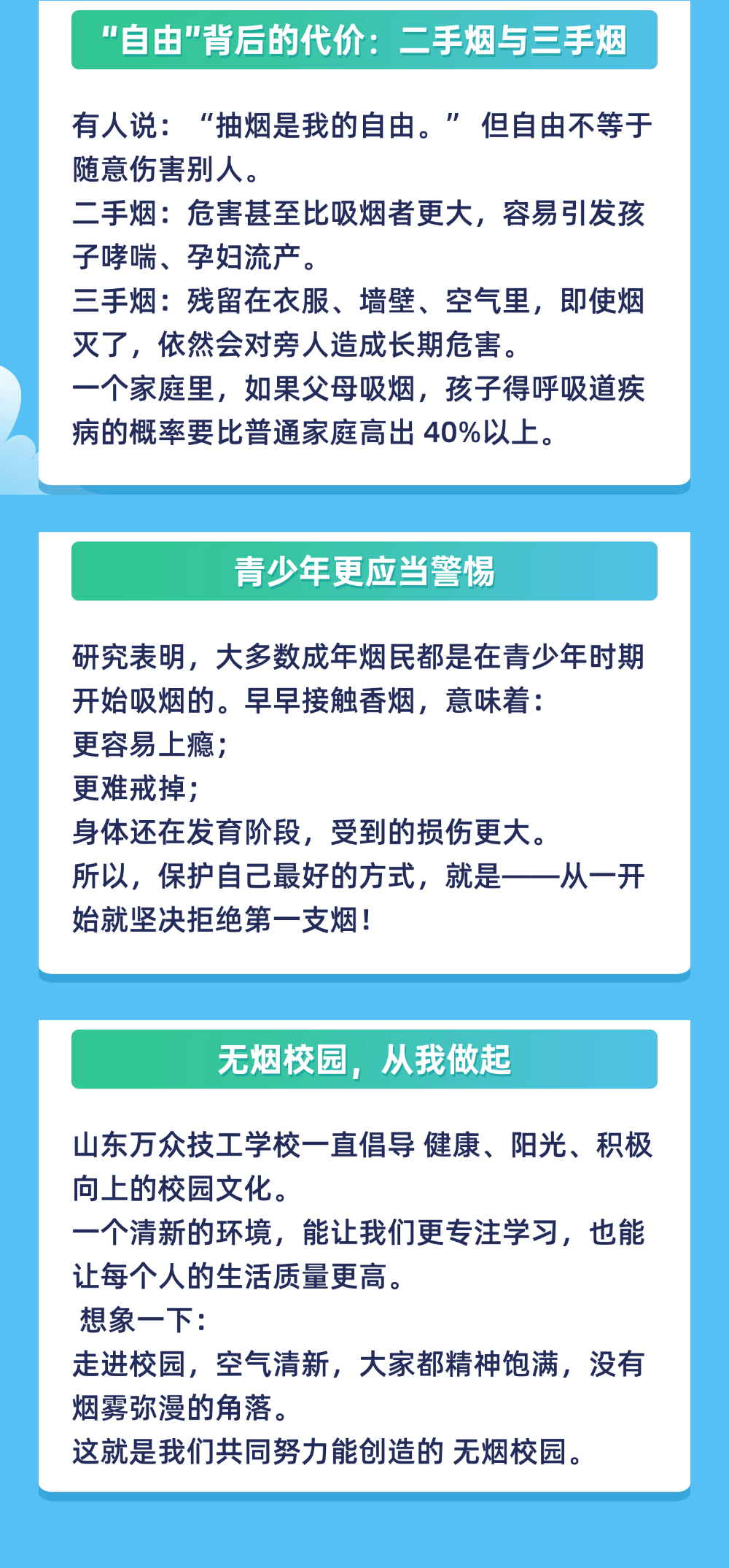 一根烟,毁掉的不止是健康 —— 山东万众技工学校无烟校园倡议
