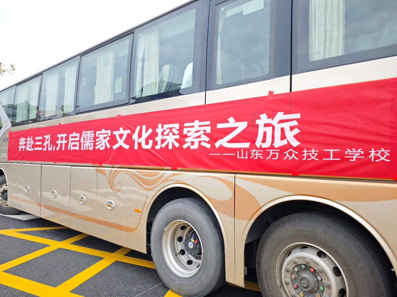 清晨,身着统一服装的新生们在学校广场集合完毕。整齐的队伍、饱满的精神状态,展现出新时代技工学子的良好风貌。“孔子是儒家学派的创始人,作为儒家文化的重要载体,承载着千年的历史与智慧,希望大家利用这次研学机会,用心感悟、学有所获。”万众校区负责人翟东主任在出发前向新生们热情动员,简洁的话语让大家对此次研学充满期待。随后,新生们有序登上大巴车,向着研学目的地——孔府孔庙景区出发。