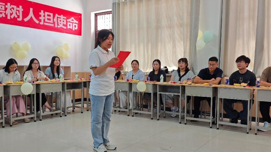 庆祝活动在温馨的“学生谢师恩”环节中拉开序幕。学生代表赵晨晨用真挚的话语朗读了写给老师的书信。信中,她深情回顾了与老师相处的点滴瞬间,字里行间饱含着对老师谆谆教诲的感激、无微不至关怀的感动以及对老师辛勤付出的崇高敬意。朴实无华的语言,诉说着最动人的师生情谊,深深打动了在场的每一位领导和老师,现场暖意融融。